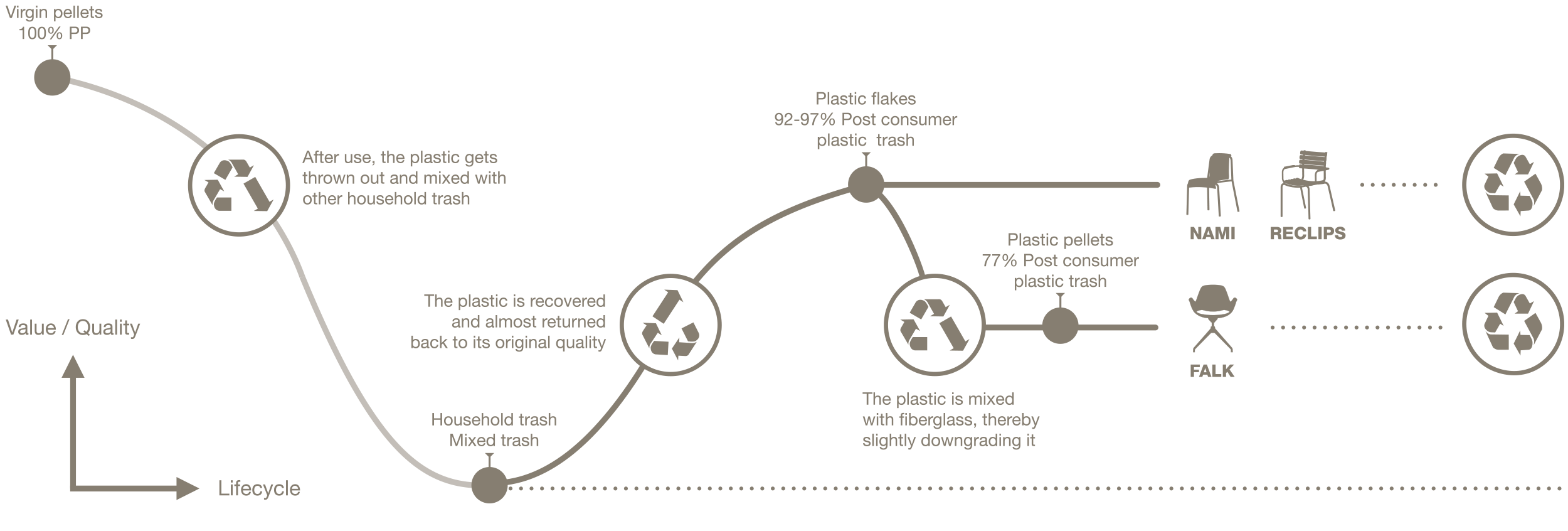 WE STOPPED LOOKING AT TRASH AS A PROBLEM, AND STARTED SEEING IT AS THE RESOURCE IT IS. AND WE CREATE FURNITURE MADE OF RECYCLED EVERYDAY HOUSEHOLD PLASTIC TRASH.