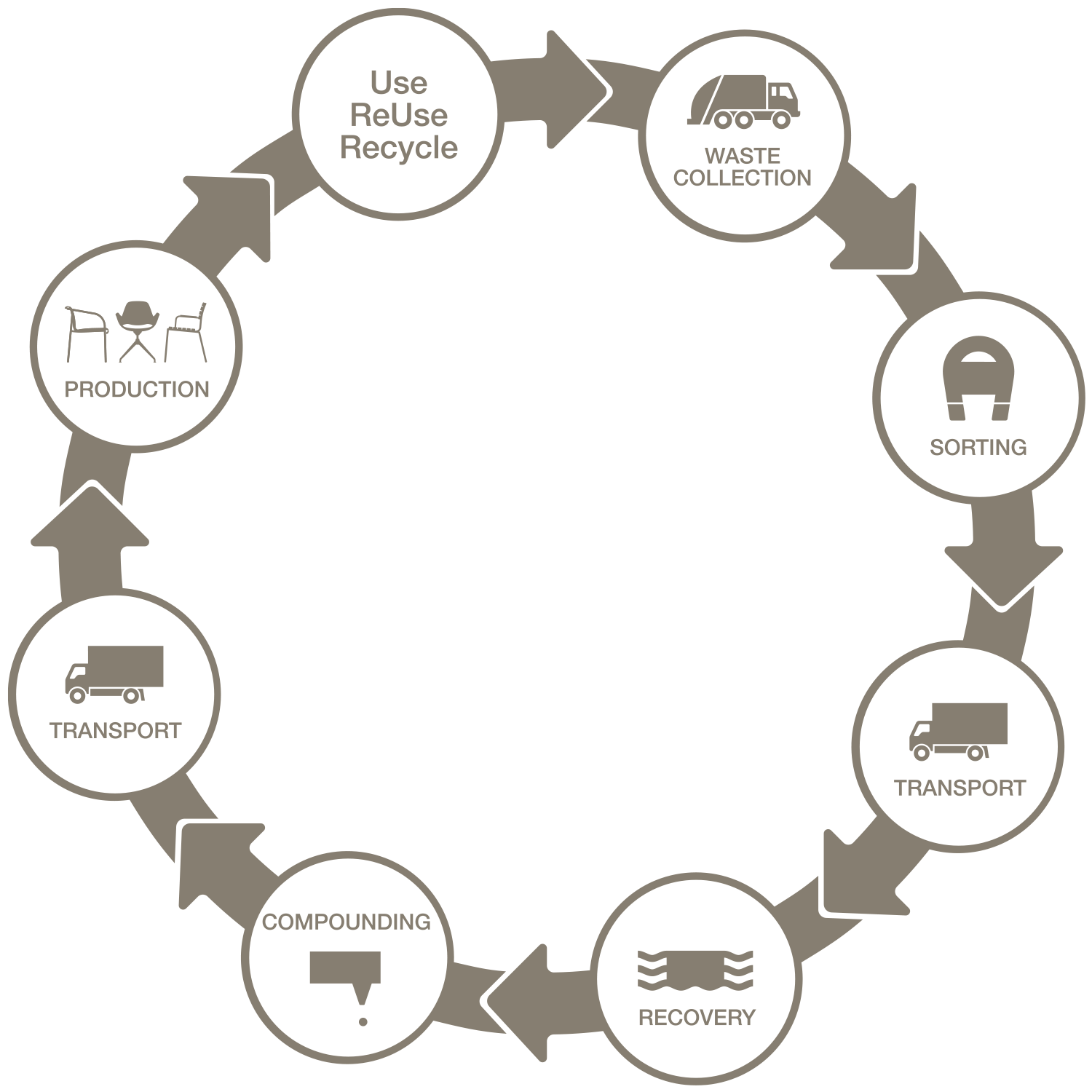 THE TECHNOLOGY BEHIND RE-USING HOUSEHOLD PLASTIC WASTE FOR FURNITURE PRODUCTION IS DEVELOPED IN DENMARK, OUR FURNITURE IS DESIGNED BY DANISH DESIGNERS AND THE PLASTIC ELEMENTS ARE PRODUCED IN DENMARK – SO, BASICALLY MYTRASH MATERIAL IS A RESULT OF MIXING DANISH DESIGN AND DANISH INNOVATION AND CONVERTING THIS NEW THINKING AND MATERIAL INTO NEW DESIGN FURNITURE.
